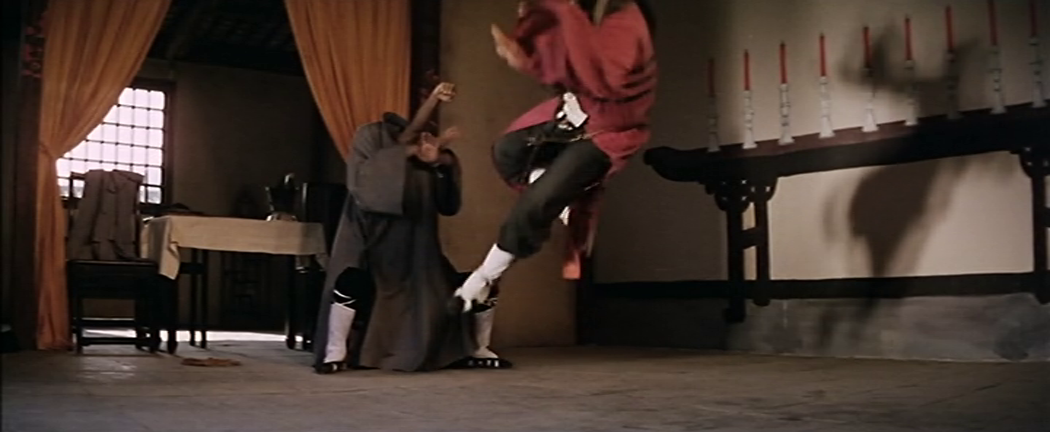 In the world of miracle fighters, all - or the vast majority - of magic is achieved with trickery, even when said trickery is based on cartoon physics. So it's always lovely to see what Woo-ping manages to pull off, and even if it sometimes the budget restrictions show through, it feels thematic somehow, and part of the movie's more than considerable charm. There's a fight with a wooden building block automaton, tons of infractions against the laws of physics, a few fights where dummy body parts are used to great effect, optical illusions, phantasm-style killer spinning tops, a cat's cradle combat... the list goes on, and on and on.